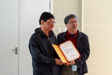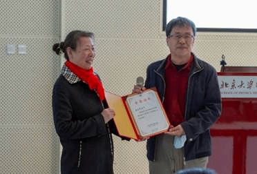 “回首执教生涯,笑看桃李芬芳。”薛老师代表全所,向四位退休老师(陈佳洱、王建勇、樊铁栓、龚建华)颁发荣誉证书,对他们多年来为全所教学科研工作做出的贡献,表示衷心的感谢,并希望退休老师继续关心所里的发展,一如继往的支持所里工作,为今后的发展谏言献策。