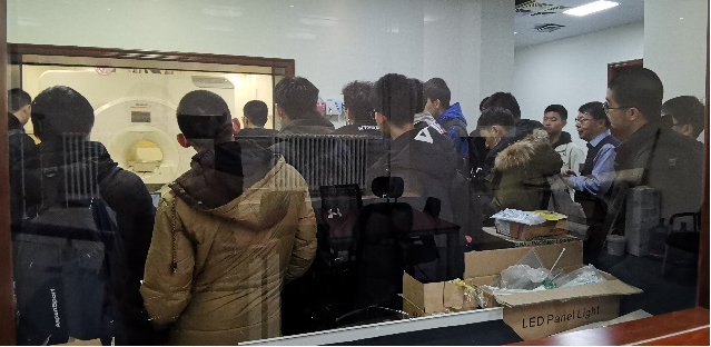 同学们的最后一站是医学物理实验室。在校内综合科研楼内,高家红老师给大家介绍了医学物理的前沿研究,并带大家参观了医学研究必备的多台先进磁共振仪器及自主研发的脑磁图设备。