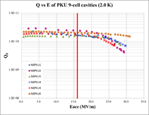 射频超导加速技术是加速器领域的高新技术,是强流高能粒子加速器,特别是连续波X射线自由电子激光所必需的技术。超导加速腔是超导加速器的核心部件。射频超导团队在攻克超导腔表面处理关键技术的基础上,研制成功批量大晶粒9-cell超导腔(图1),仅采用缓冲化学抛光处理及高温热处理,6只超导腔加速梯度全部在25MV/m以上,在16 MV/m(硬X射线自由电子激光装置预期运行梯度)和2 K温度下,超导腔品质因数在1.6-2.4´1010(图2)。按国际惯例,这批超导腔的加速梯度和品质因数在统计意义上均达到了国际先进水平。