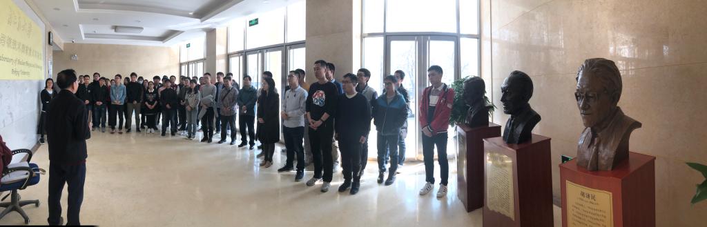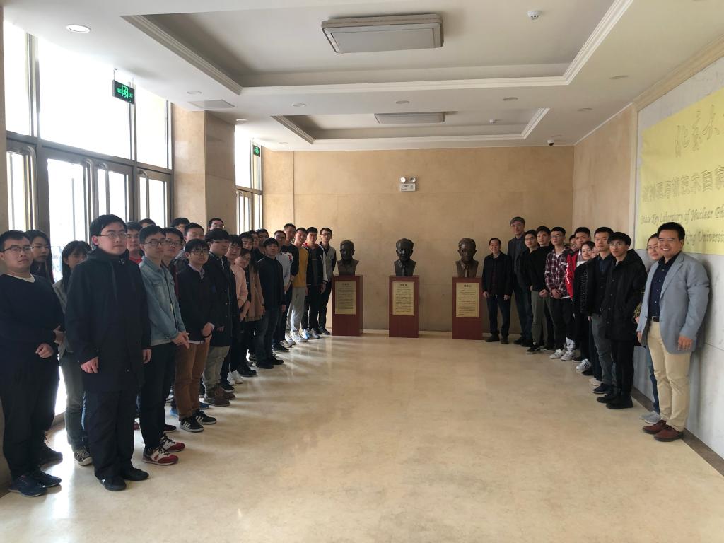 2019年3月18日下午在加速器楼大厅,物理学院技术物理系和重离子所在职教工党支部及学生支部联合开展了一次缅怀先辈教育活动,邀请到物理学院郑春开教授为师生们介绍朱光亚先生、胡济民先生和虞福春先生的生平和事迹,师生共约50人参加。