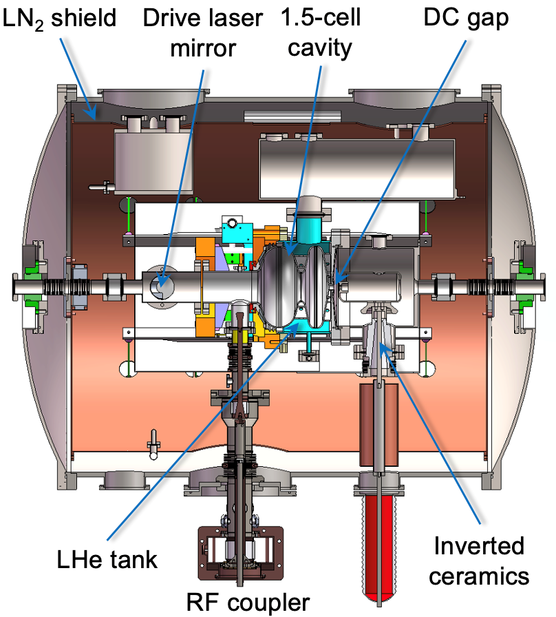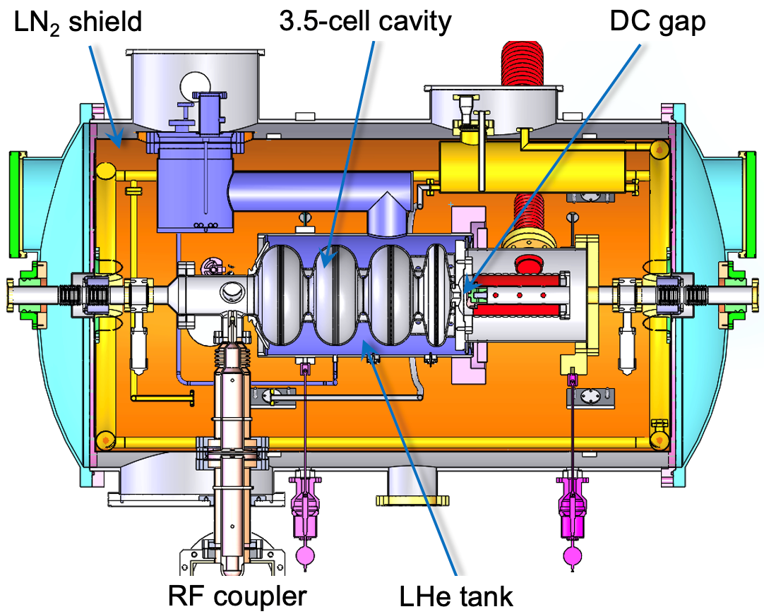 使用具有高量子效率半导体光阴极的射频超导电子枪被认为是获得高亮度连续波(CW)电子束的理想途径,国际上多家研究机构长期致力于相关研发,但工作多受制于半导体光阴极和超导腔的兼容问题。为解决这一难题,射频超导团队于2001年原创性提出直流-射频超导(DC-SRF)光阴极电子枪(也称“DC-SC光阴极注入器”或“DC-SRF光阴极注入器”)的概念,结合DC高压电极和1.3 GHz SRF加速腔,不仅避免了半导体光阴极对SRF加速腔性能的影响,还有助于降低电子枪运行时的暗电流。