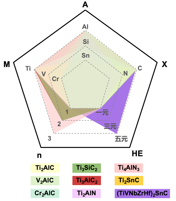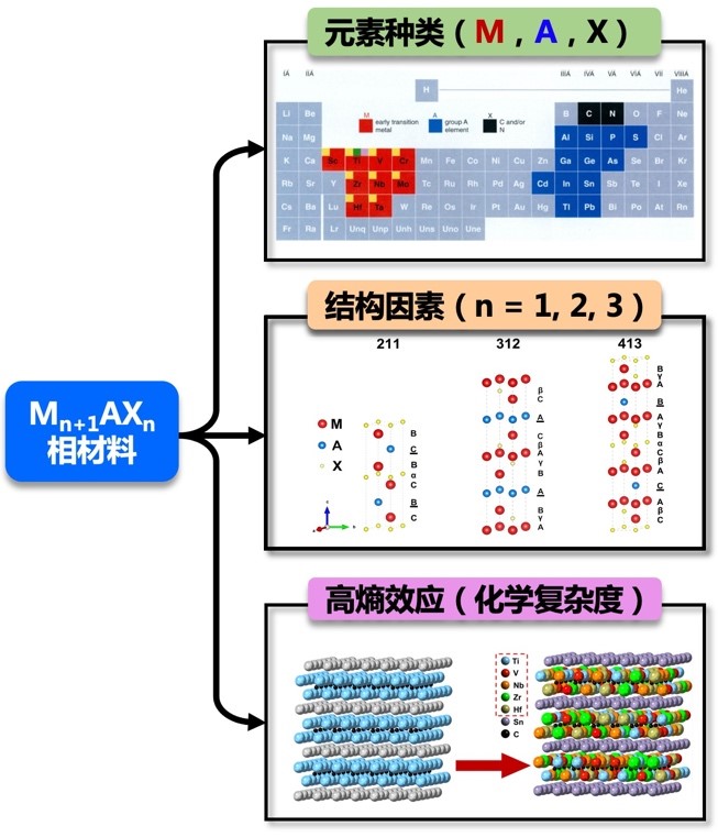 影响MAX相陶瓷材料结构及性能的三大因素(左),多元陶瓷材料辐照损伤性能评价标准及体系(右)