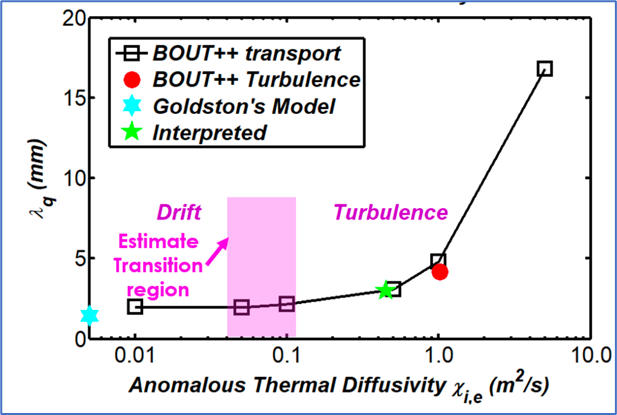 托卡马克刮削层的热负荷问题是未来聚变堆面临的主要问题之一。徐学桥、王晓钢老师组通过课题组开发的BOUT++磁流体程序对刮削层内的输运问题开展了系列研究,发现湍流输运的引入可以显著增加刮削层的宽度,从而有效减低偏滤器的热流强度(李泽宇,博士论文(2019))。这一结果对未来聚变堆的运行设计有重要参考意义。